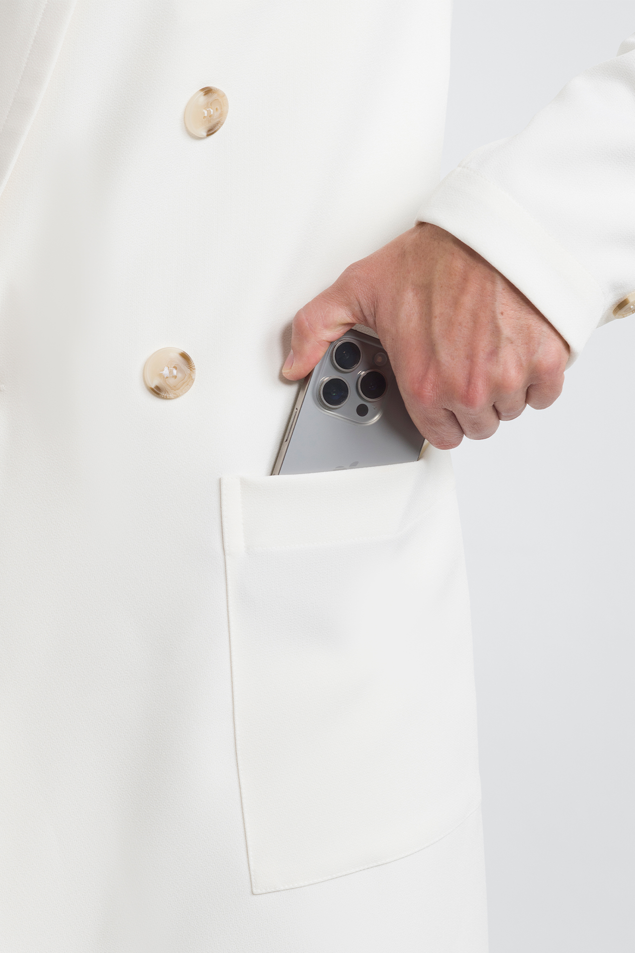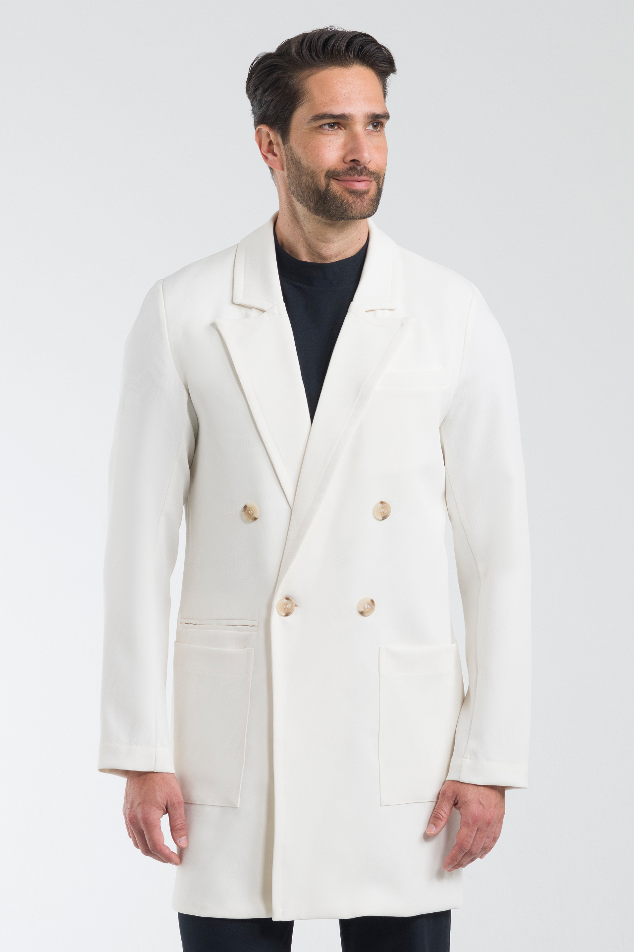 Con solapa deportiva y acabado pespunteado, la pieza destaca por su forma recta y envolvente, cerrada con botones mixtos que refuerzan el estilo premium. Además, la bata cuenta con 5 bolsillos funcionales, uno de ellos interno con cremallera invisible, perfecto para mantener objetos pequeños seguros y discretos. Perfecto para profesionales que buscan un look clásico y funcional.