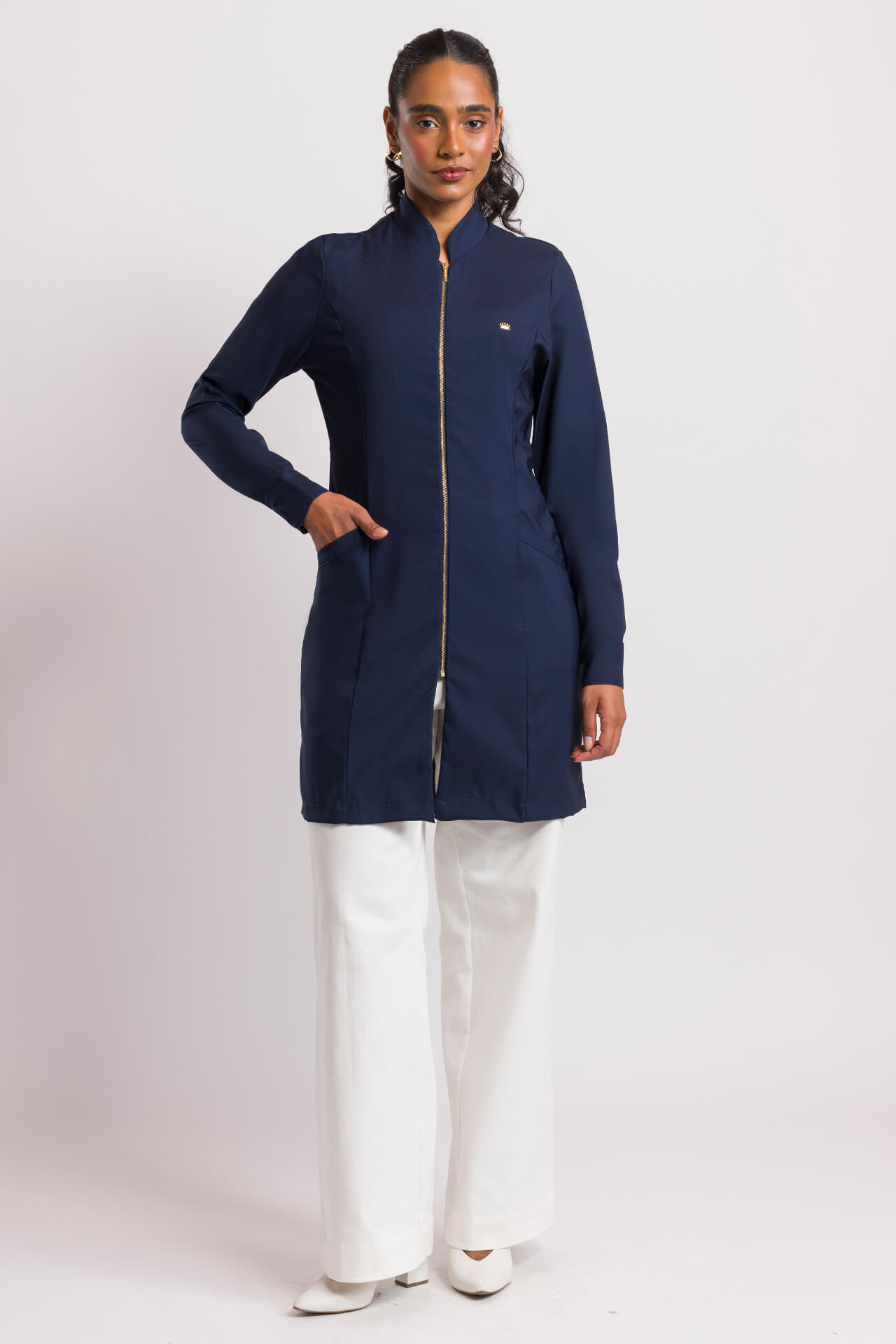 Ideal para profesionales de la salud, como médicos, enfermeras, dentistas, así como áreas como fisioterapia, nutrición, estética, entre otros, la bata de laboratorio Jose es la elección perfecta para quienes buscan combinar elegancia y practicidad. Con cuello sacerdote y detalles dorados, ¡es una pieza versátil que destaca en cualquier entorno profesional!
