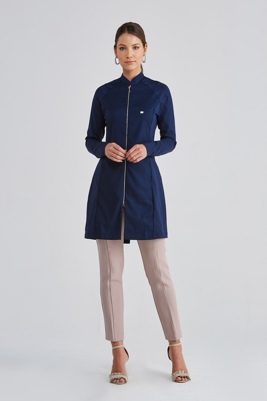 El diseño funcional se complementa con el cuello clerical, que ofrece una protección extra al profesional durante la vida cotidiana, y con el cierre de cremallera, que garantiza una gran practicidad.