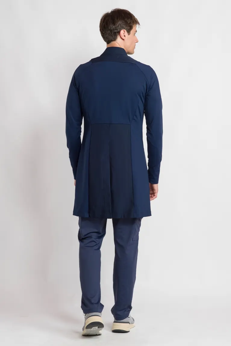 El diseño moderno se complementa con el cuello de sacerdote y el cierre de cremallera, que juntos brindan un aspecto contemporáneo y profesional, ideal para médicos, dentistas, fisioterapeutas y otros profesionales de la salud que buscan una pieza funcional y elegante para el trabajo.