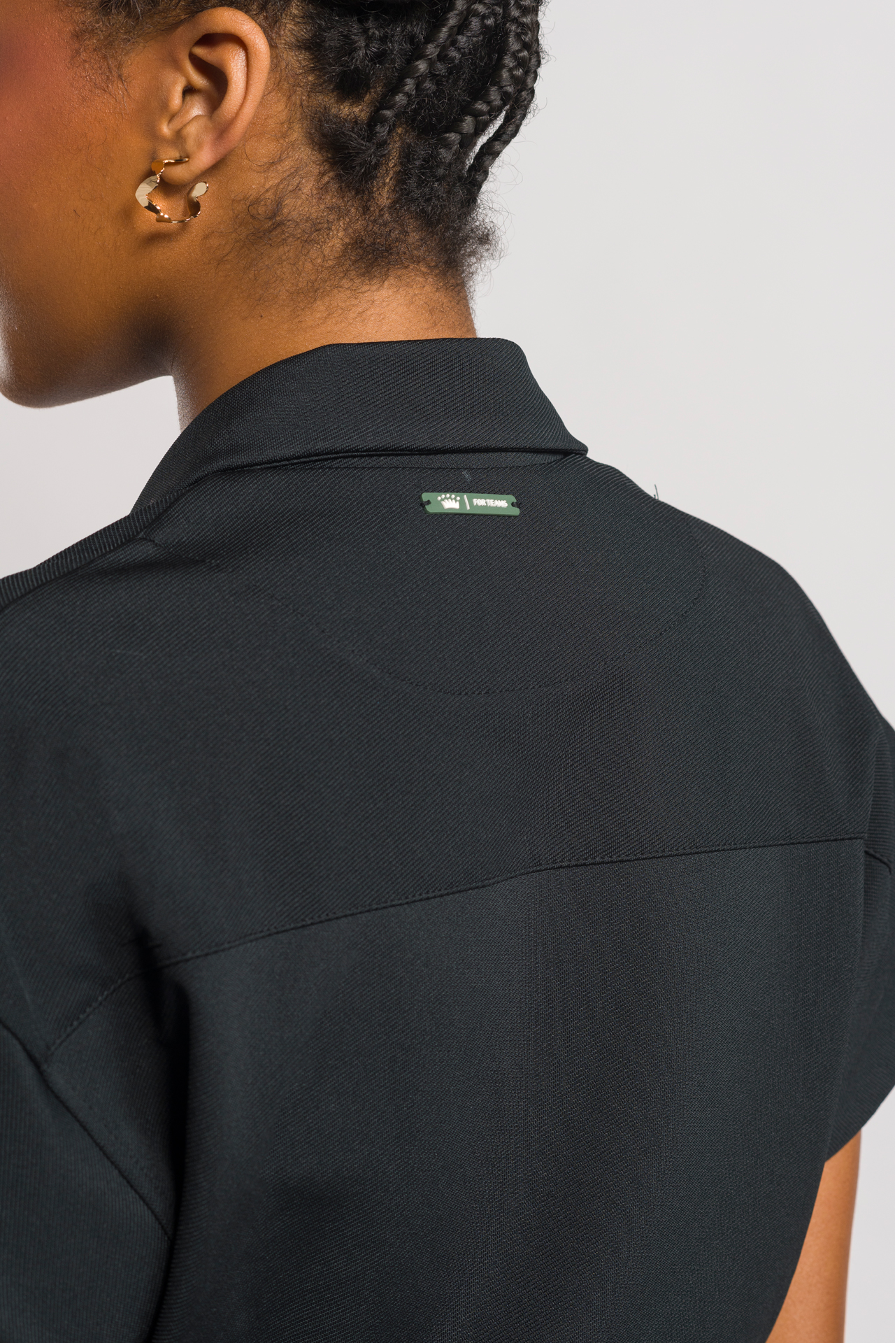 Con cuello sastre y escote cruzado, el mono cuenta con cierre interno de botones y ganchos, brindando seguridad y practicidad al momento de vestir. Sus pantalones anchos con pliegues y bolsillos laterales aportan un aspecto refinado, además de funcionalidad para el uso diario. Completo con la identidad “For Teams” en etiquetas y placas personalizadas, es perfecto para profesionales que desean combinar moda y funcionalidad.